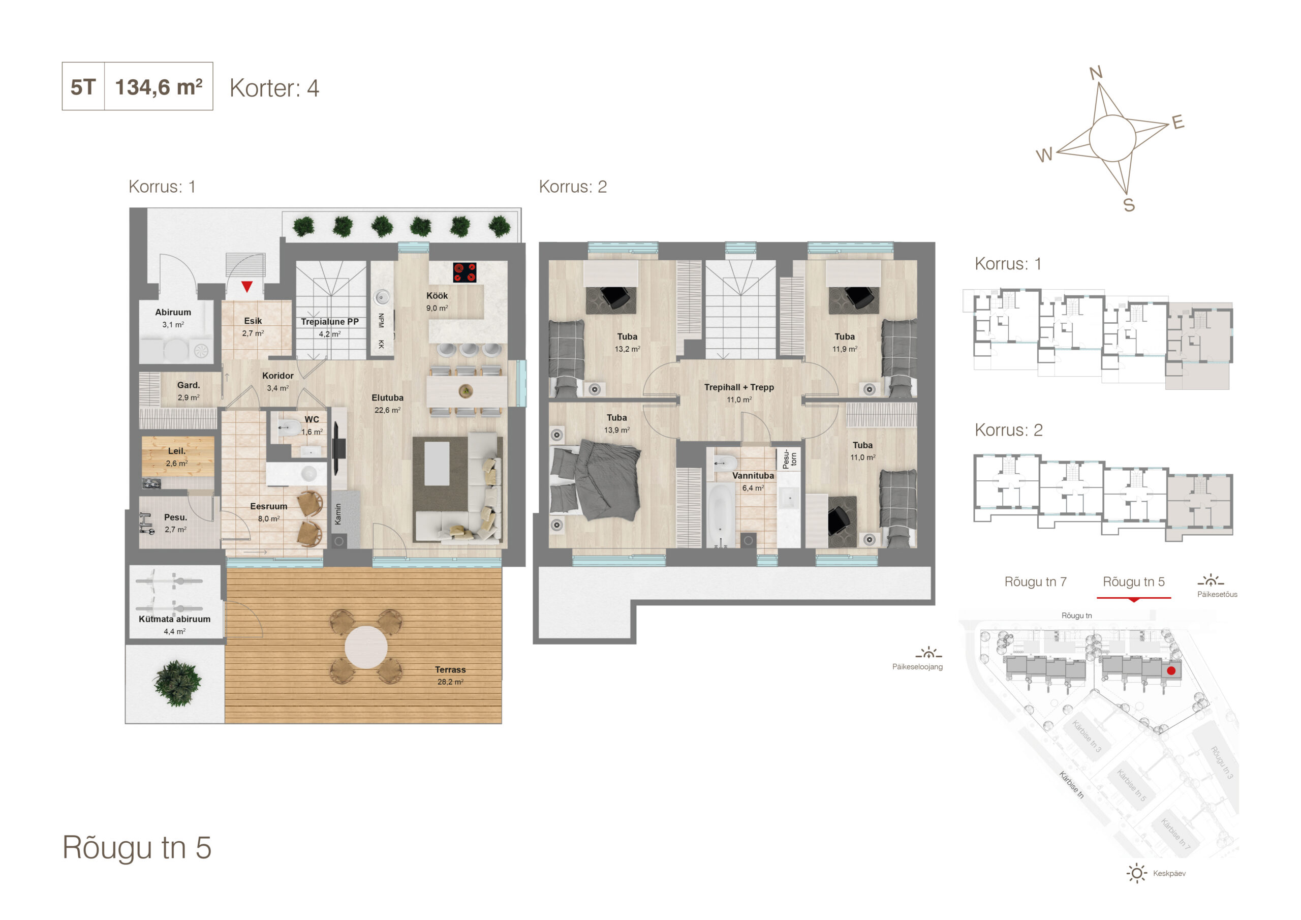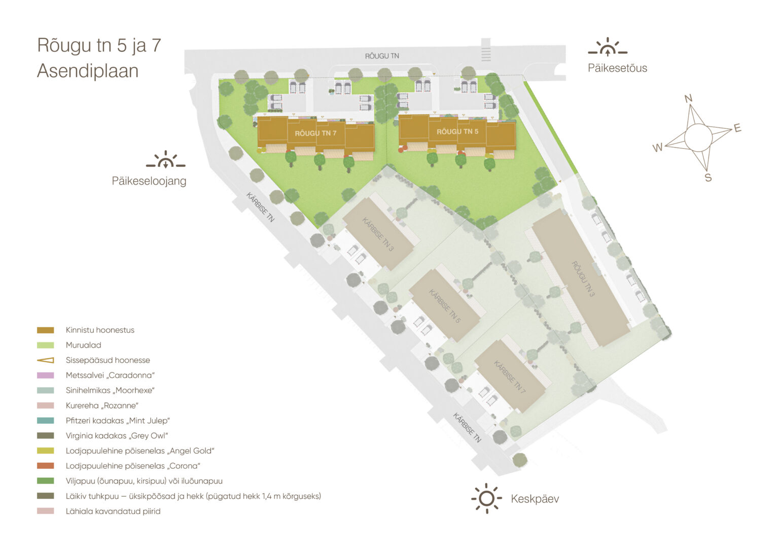 Rida ja paariselamu korterid on läbi kahe korruse, viietoalised, korteripõhise maakütte ja ventilatsiooniga. Igas korteris on saun, korteri juurde kuulub suur terrass ja kaks parklakohta suletud hoovis. Hoonete energiaarvutusel põhinev energiamärgis vastab klassile A.
