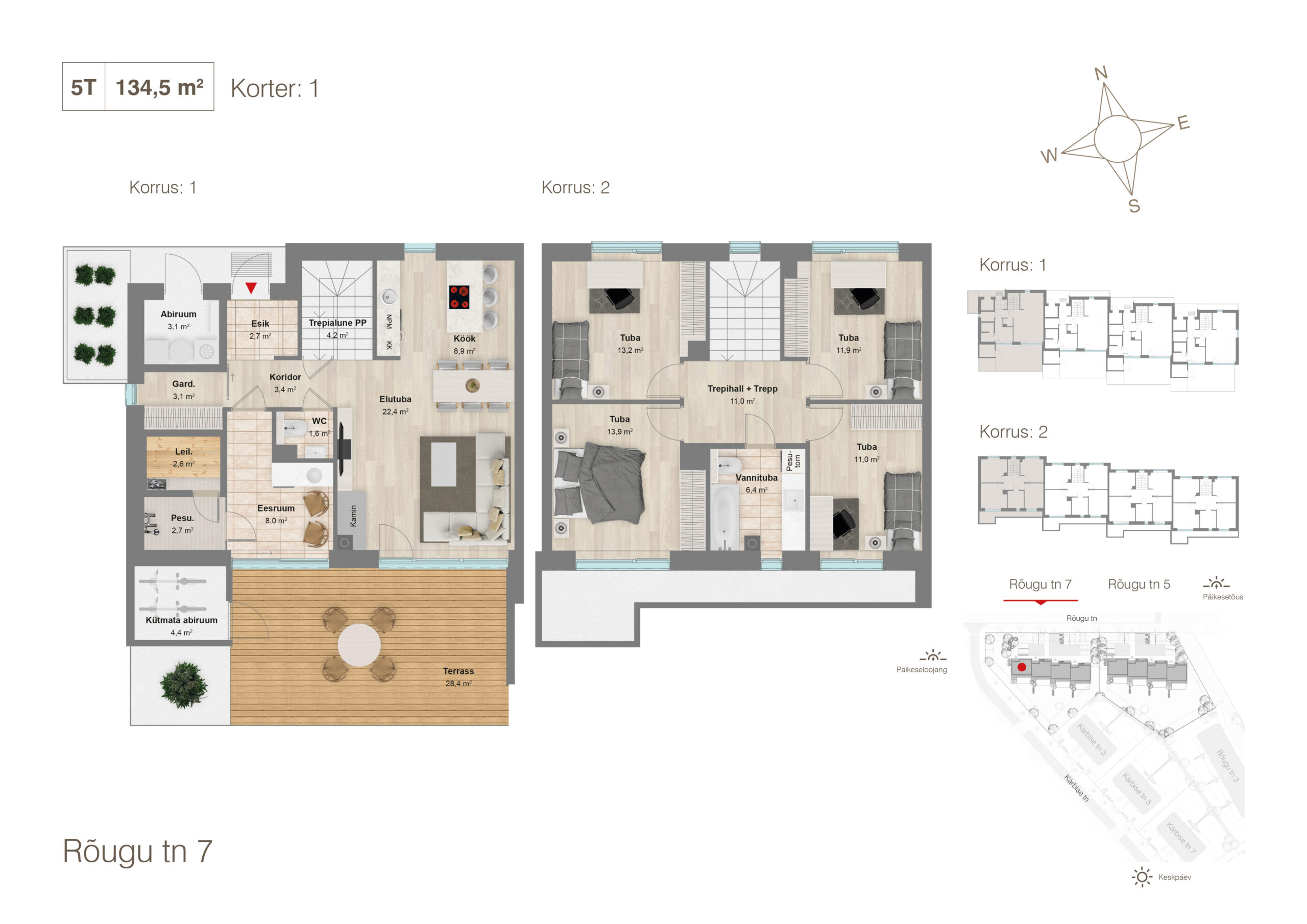 Rida ja paariselamu korterid on läbi kahe korruse, viietoalised, korteripõhise maakütte ja ventilatsiooniga. Igas korteris on saun, korteri juurde kuulub suur terrass ja kaks parklakohta suletud hoovis. Hoonete energiaarvutusel põhinev energiamärgis vastab klassile A.